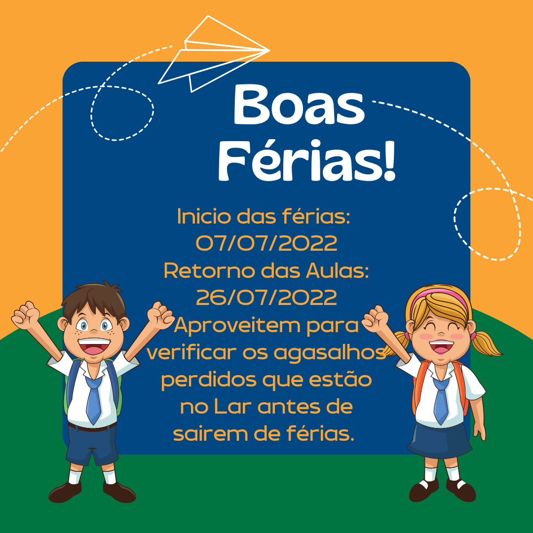 FAMÍLIA, APROVEITEM OS DIAS DE FÉRIAS E FAÇAM BRINCADEIRAS INSTRUTIVAS COM SEUS FILHOS, LEIAM UMA HISTÓRIA, INTERPRETEM, INTERAJAM DE FORMA CRIATIVA, DIVIRTAM-SE E SE ENCHARQUEM DE AMOR. FELIZ FÉRIAS!